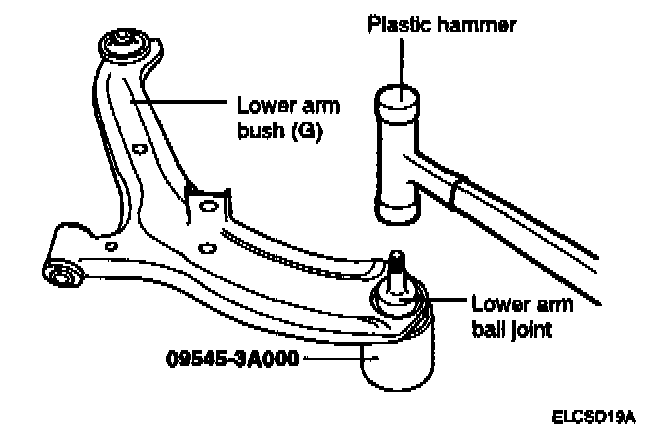 4. Using a plastic hammer, remove the ball joint from the lower arm assembly.