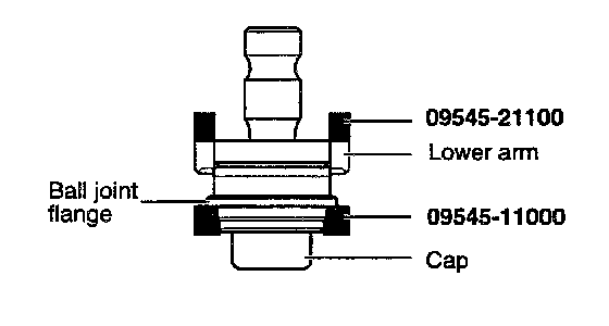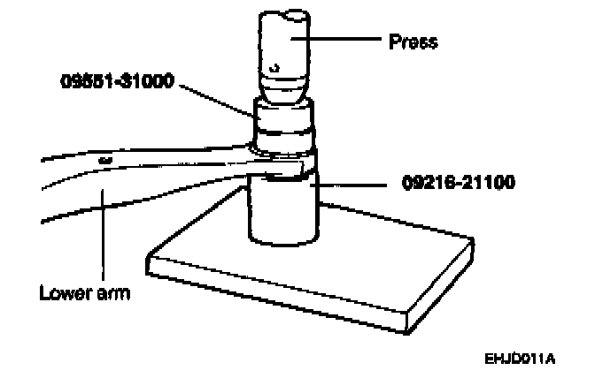 2. Supporting the ball joint flange, press down the lower arm bushing until the flange touches the lower arm surface.