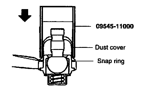 3. Using a snap ring pliers, install the snap ring. Keep the amount of the snap ring expansion as small as possible.