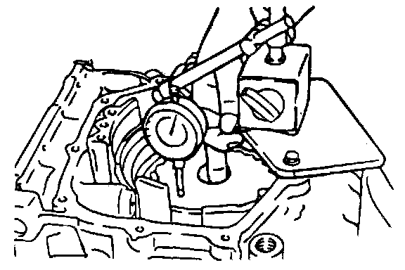 LOW-REVERSE BRAKE END PLAY ADJUSTMENT Reverse the transmission and install a dial gauge. Move the special tool up and down to measure the end play.
