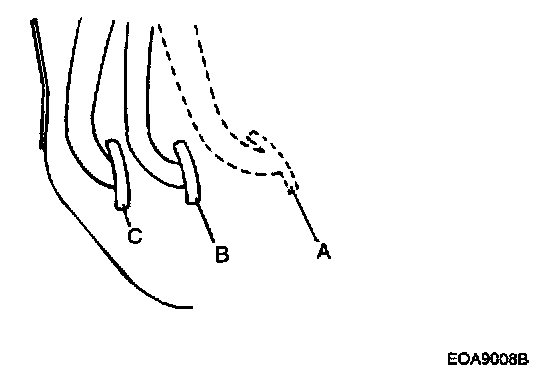 The rapidly-repeated operation of the clutch pedal in B-C range may disrupt the release cylinder's position. During the bleeding operation, press the clutch pedal to the floor after it returns to the "A point.