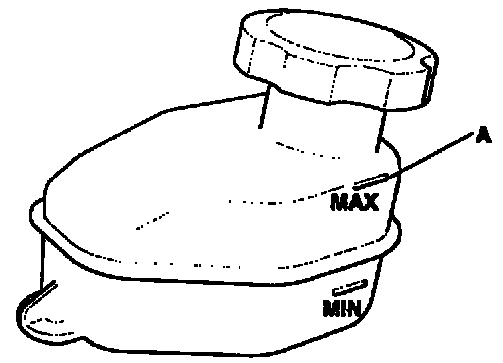 1. Make sure the brake fluid level in the reservoir is at the MAX (upper) level line (A).