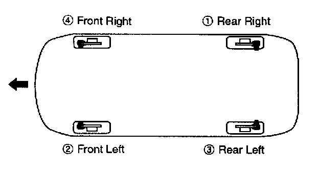 4. Repeat the procedure for each wheel in the sequence shown below until air bubbles no longer appear in the fluid.