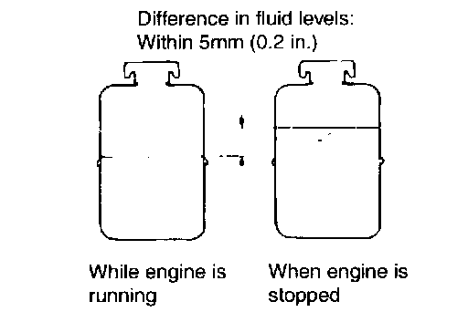 1. If the fluid level varies 5 mm (0.2 inch) or more, bleed the system again.