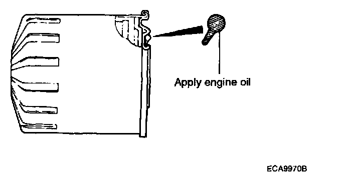 2. Before installing a new oil filter on the engine, apply clean engine oil to the surface of the rubber gasket.
