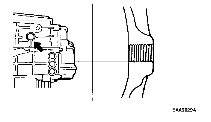 3. Fill with transaxle oil (through the filler plug part) until the oil level is the same level as the plug hole.