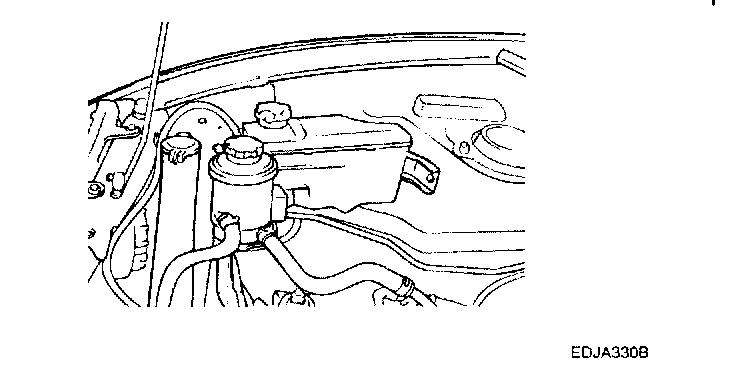 2. With the engine idling, turn the wheel all the way to the left and right several times. Check the fluid in the oil reservoir for foaming, and its level. Replenish the fluid in the oil reservoir through the oil filter if necessary.