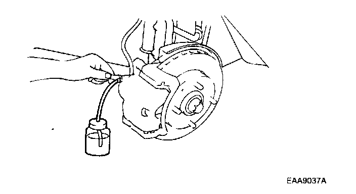 3. Depress the brake pedal a few times. Then loosen the bleeder screw(with the brake pedal still depressed), and tighten it after the brake fluid stops flowing.