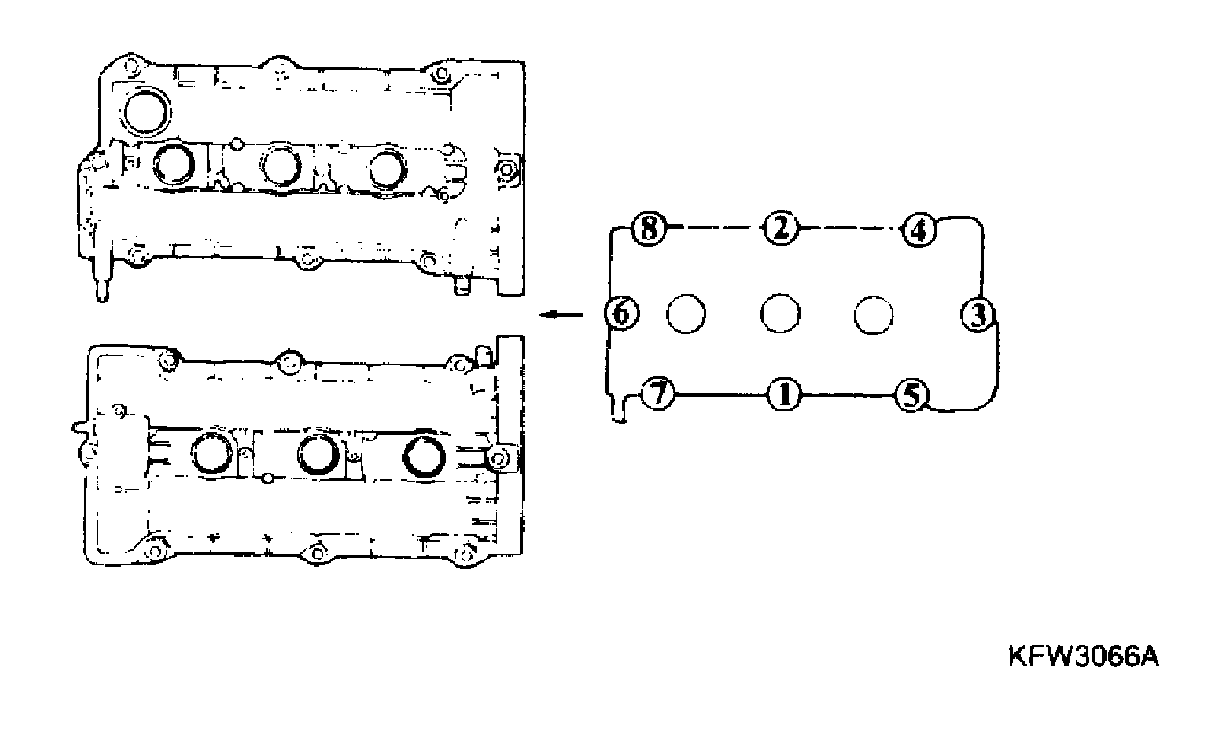 1) Tighten all bolts temporarily to half of the specified torque in the sequence 1.2.3.4.5.6.7.8
