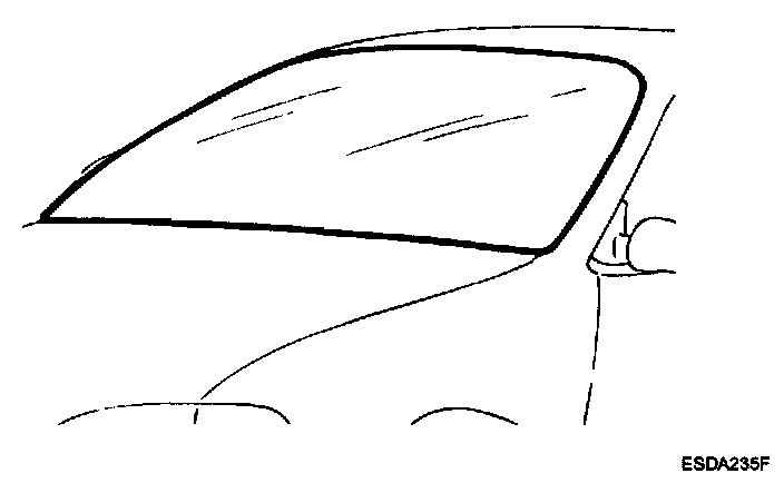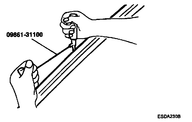 CAUTION: Be careful not to remove more adhesive than necessary, and also not to damage the paintwork on the body surface with the knife. If the paintwork is damaged, repair the damaged area with touch-up-paint