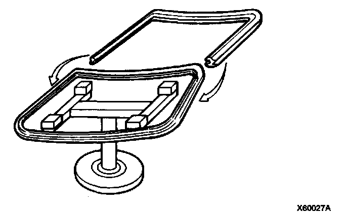 10. Using suction cups or the special tool (09861-31400), lower the glass over the opening, align it with the marks made in step 3 and set it down on the sealant.