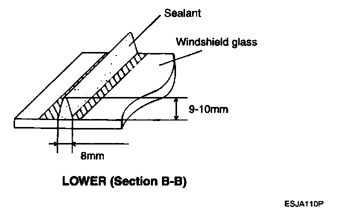 1. Using a knife or the special tool(09861-31200), cut the old sealant smoothly to a thickness of about 2 mm (0.08 in.) on the bonding surface around the entire windshield flange.