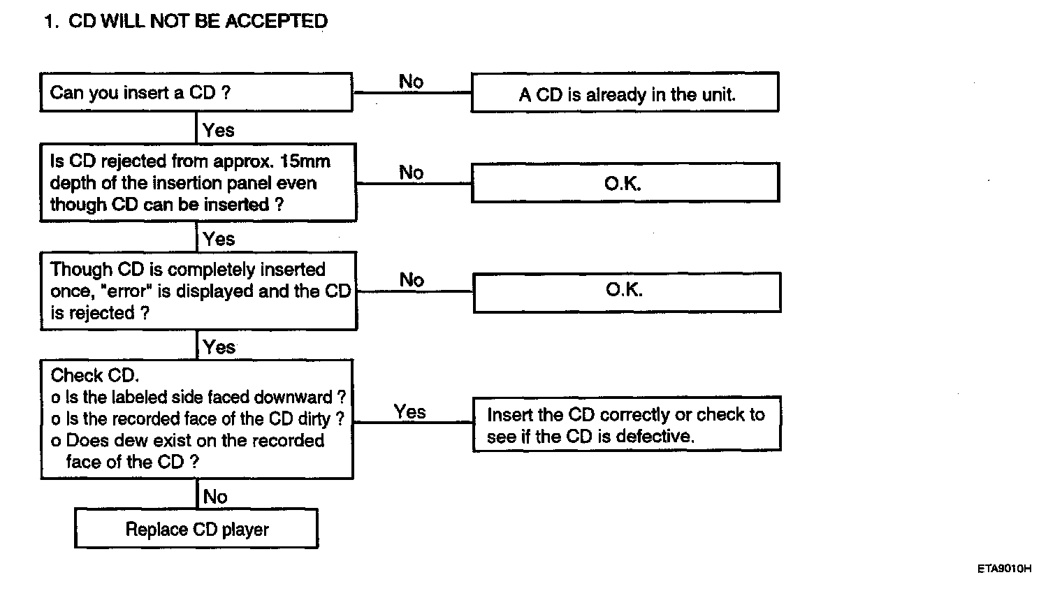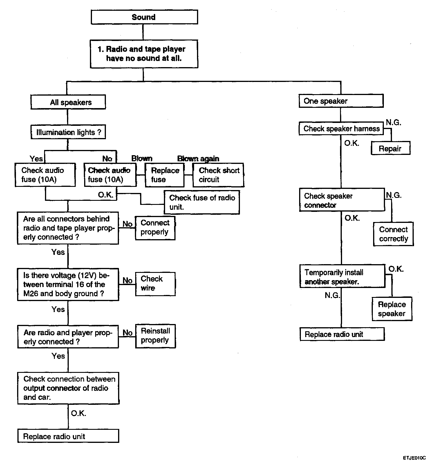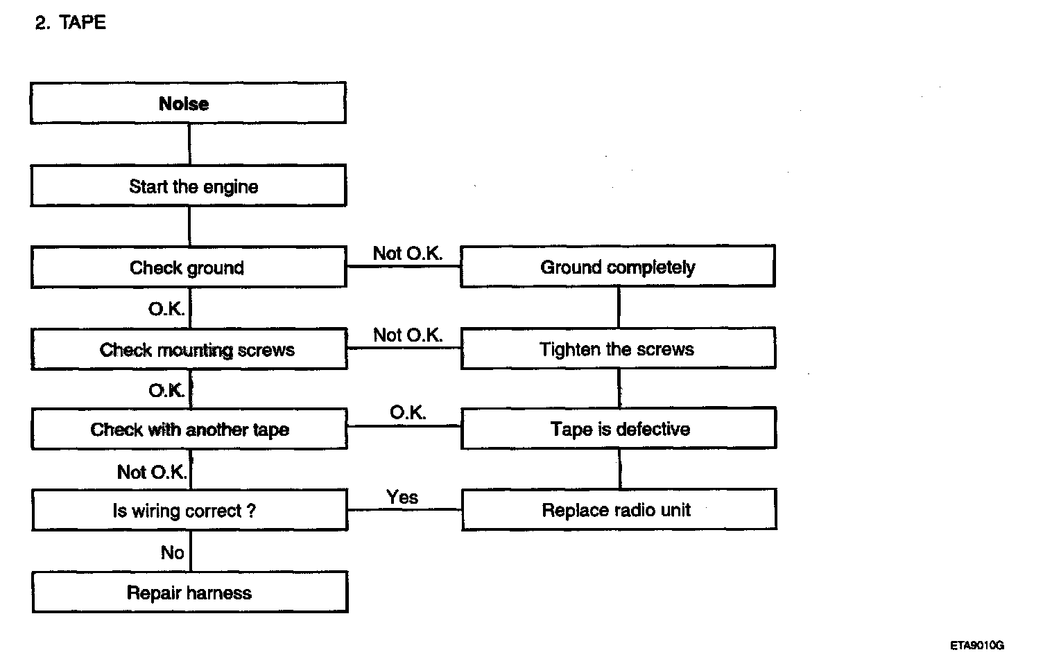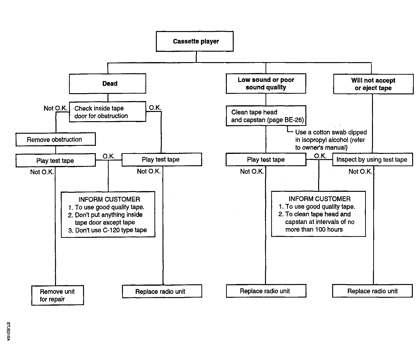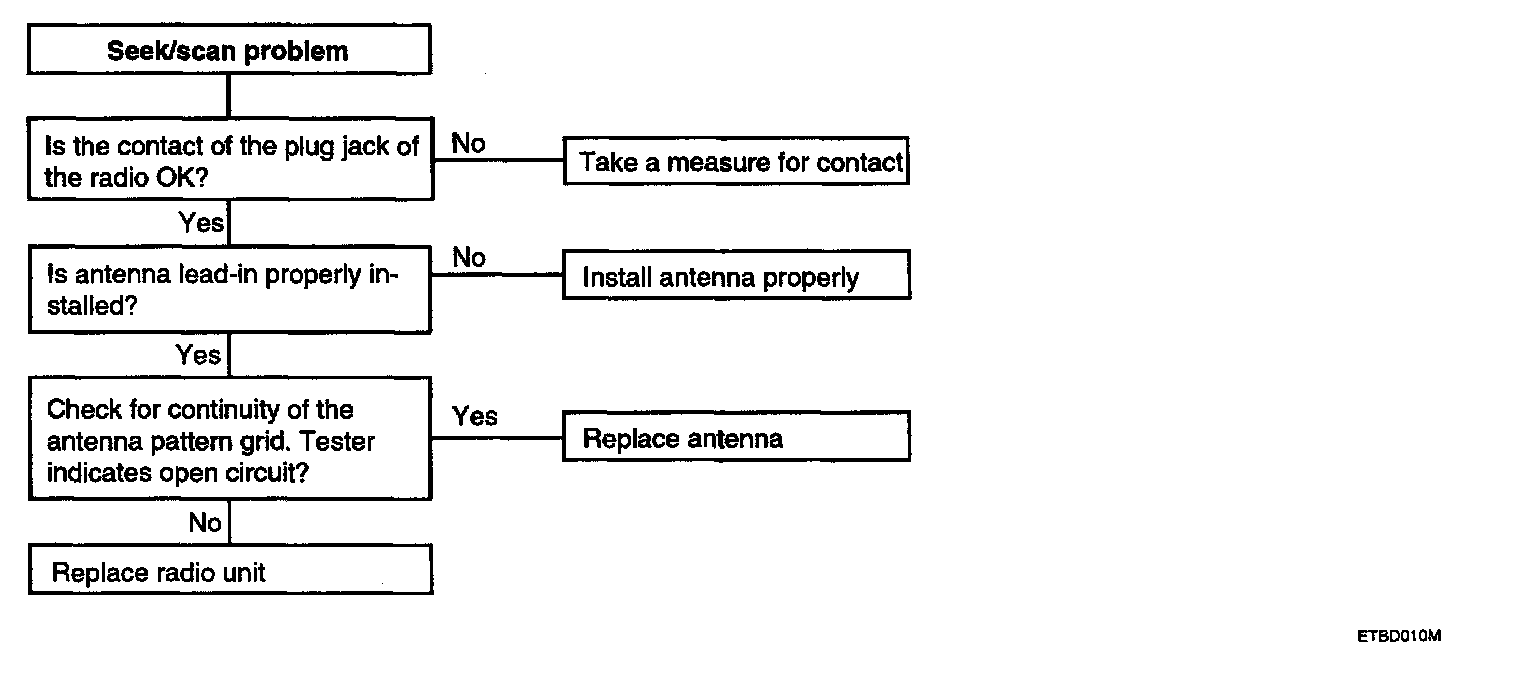 AUDIOThere are six areas where a problem can occur: wiring harness, the radio, the cassette tape deck, the CD player, the speaker, and antenna. Troubleshooting enables you to confine the problem to a particular area.