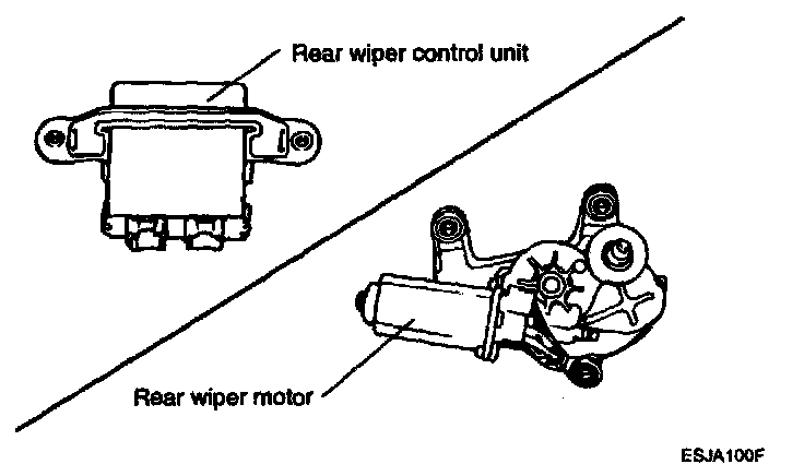 8. From the interior, remove the rear wiper control unit and the rear wiper motor.