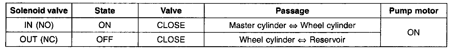 When the brake fluid pressure is maximally decreased in wheel cylinder, HECU sends a signal to solenoid valve to keep the fluid pressure, voltage is supplied to inlet valve but it is not supplied to outlet valve. At this time inlet and outlet valves are closed and brake fluid is kept in wheel cylinder.
