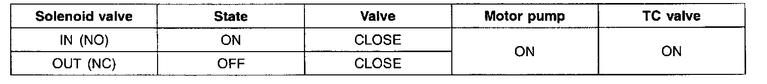 ^ Outlet valve is open to release the brake pressure and inlet valve is closed to block the pressure increase from the motor pump.