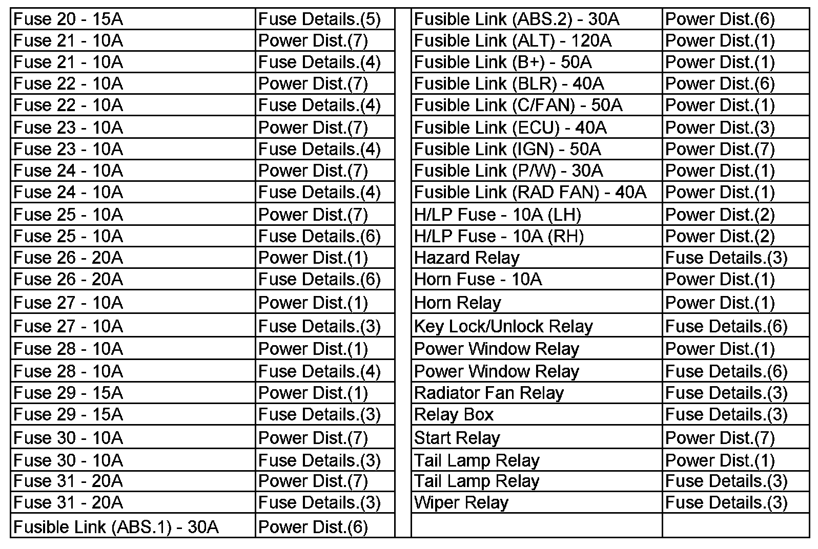 A/C Fuse - 10A TO Fuse 20 - 15A: