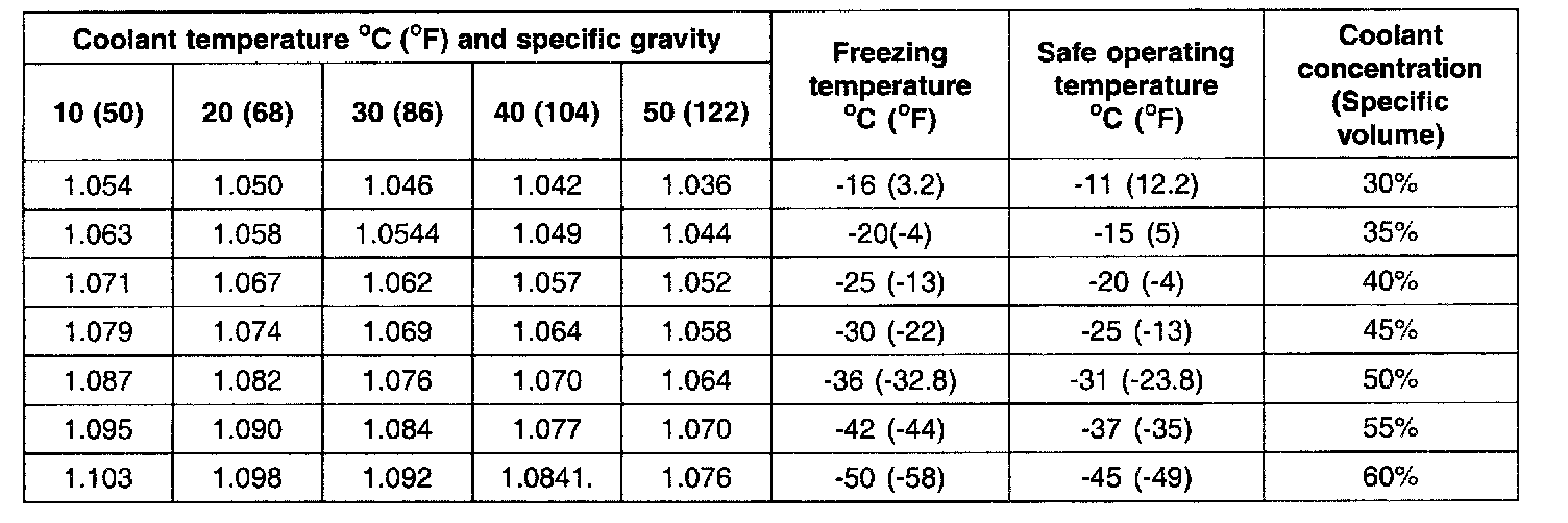 RELATION BETWEEN COOLANT CONCENTRATION AND SPECIFIC GRAVITY