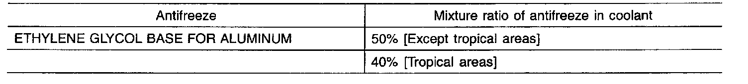 ^ If the concentration is above 60%, the engine cooling property will decrease, affecting the engine adversely. For these reasons, be sure to maintain the concentration level within the specified range.