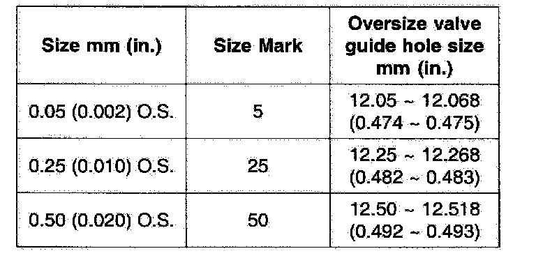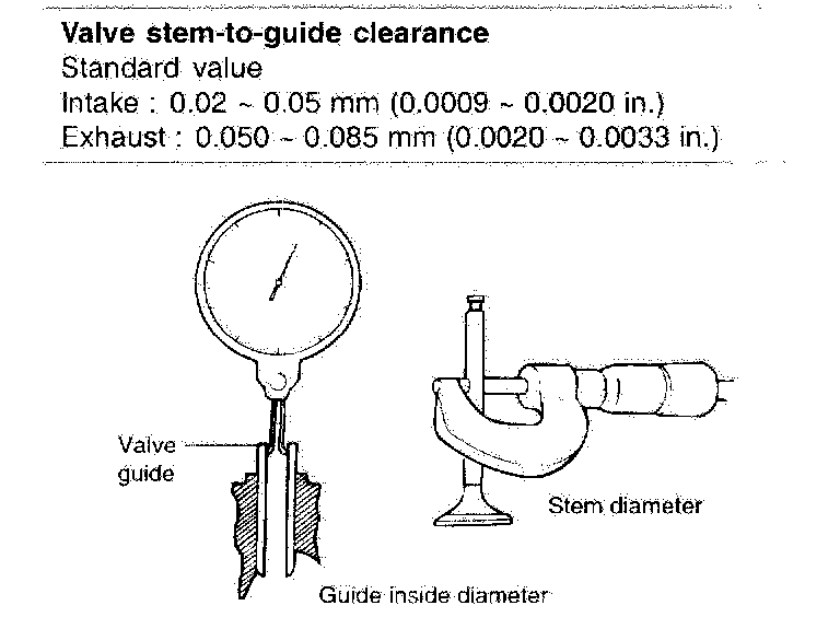 Check the valve stem-to-guide clearance. If the clearance exceeds the service limit, replace the valve guide with a new oversize guide