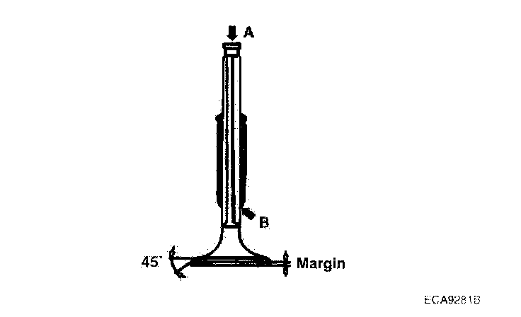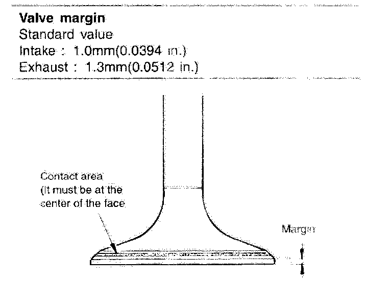 3. Replace the valve if the width of the margin (thickness of the valve head) is less than the minimum specified.