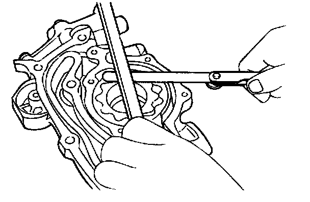 2. Assemble the rotor on the oil pump and then check the clearance with a thickness gauge.