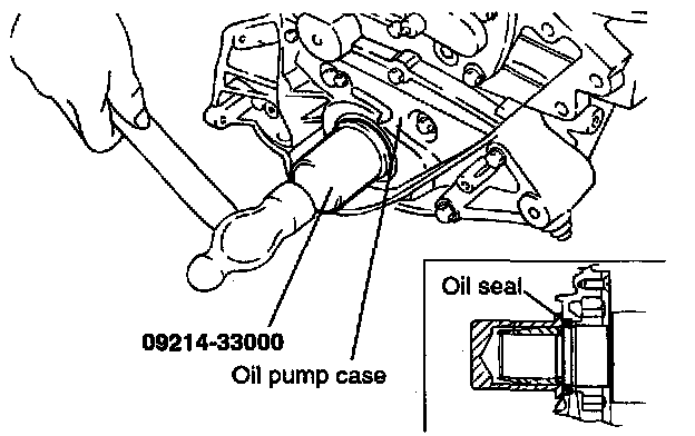 2. Install the oil seal into the oil pump case as tightly as possible, using the special tool (09214-33000).