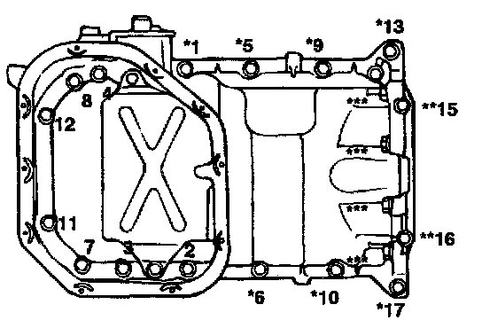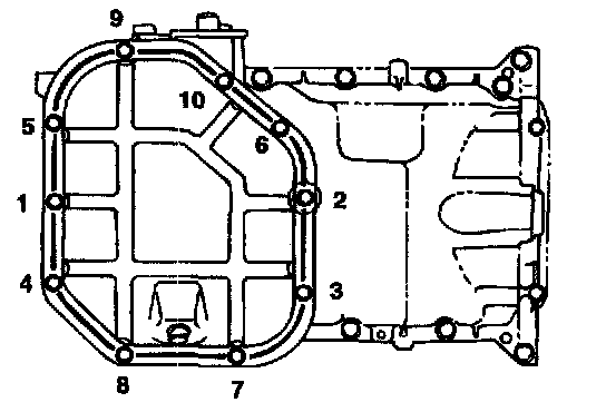 7. Install the oil pan and tighten the bolts to the specified torque.