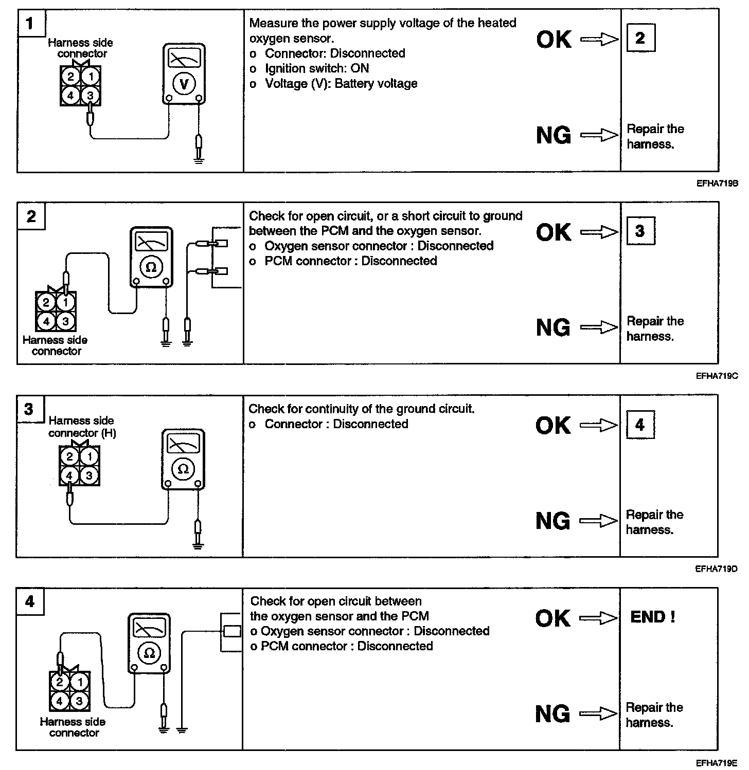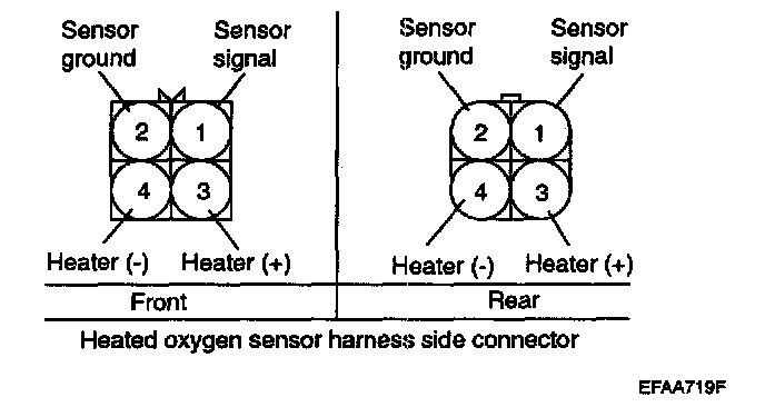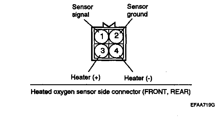 1. Disconnect the oxygen sensor connector, and measure the resistance between terminal 3 and terminal 4.
