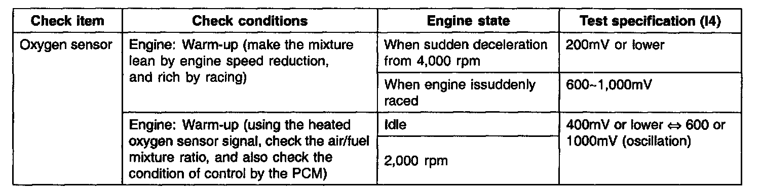 2. If the HO2S check results are normal, but the sensor output voltage is out of specification, check for the following items (related to air fuel ratio control system):