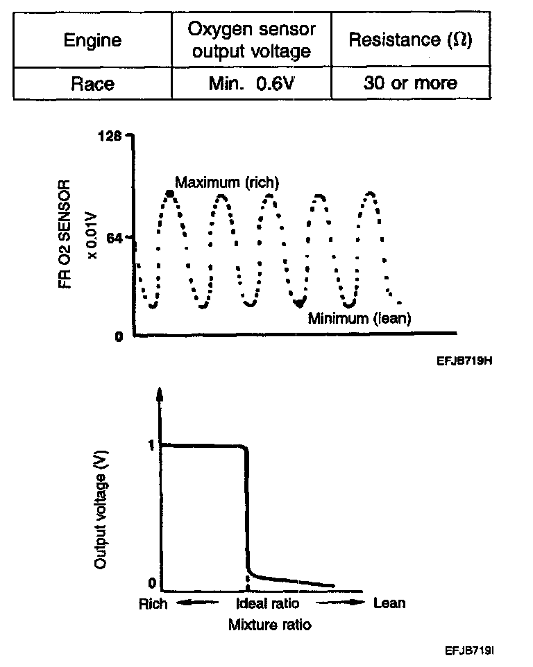 5. While repeatedly racing the engine, measure the oxygen sensor output voltage.