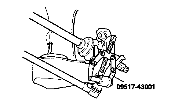 7. Using the special tool (09517-43001), remove the rear suspension upper and lower arm.