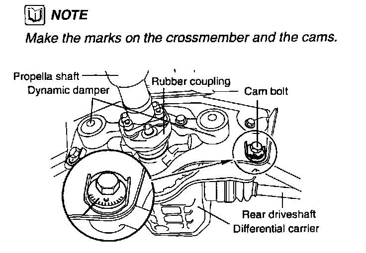 NOTE: First, remove the 2 differential and crossmember mounting bolts and then remove the 4 body and crossmember mounting bolts.