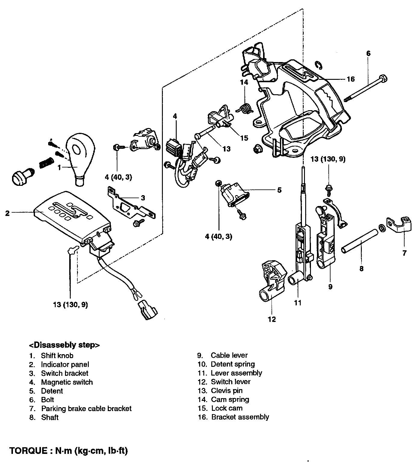 3. When the brake pedal is not depressed, the shift lever should shift smoothly to "P" position from all heading other positions.