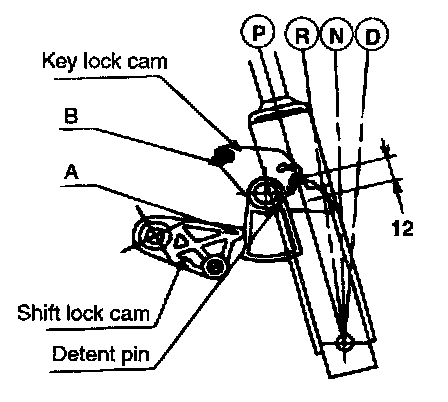 ^ Check that the key lock cam is located at "B" by the detent pin.
