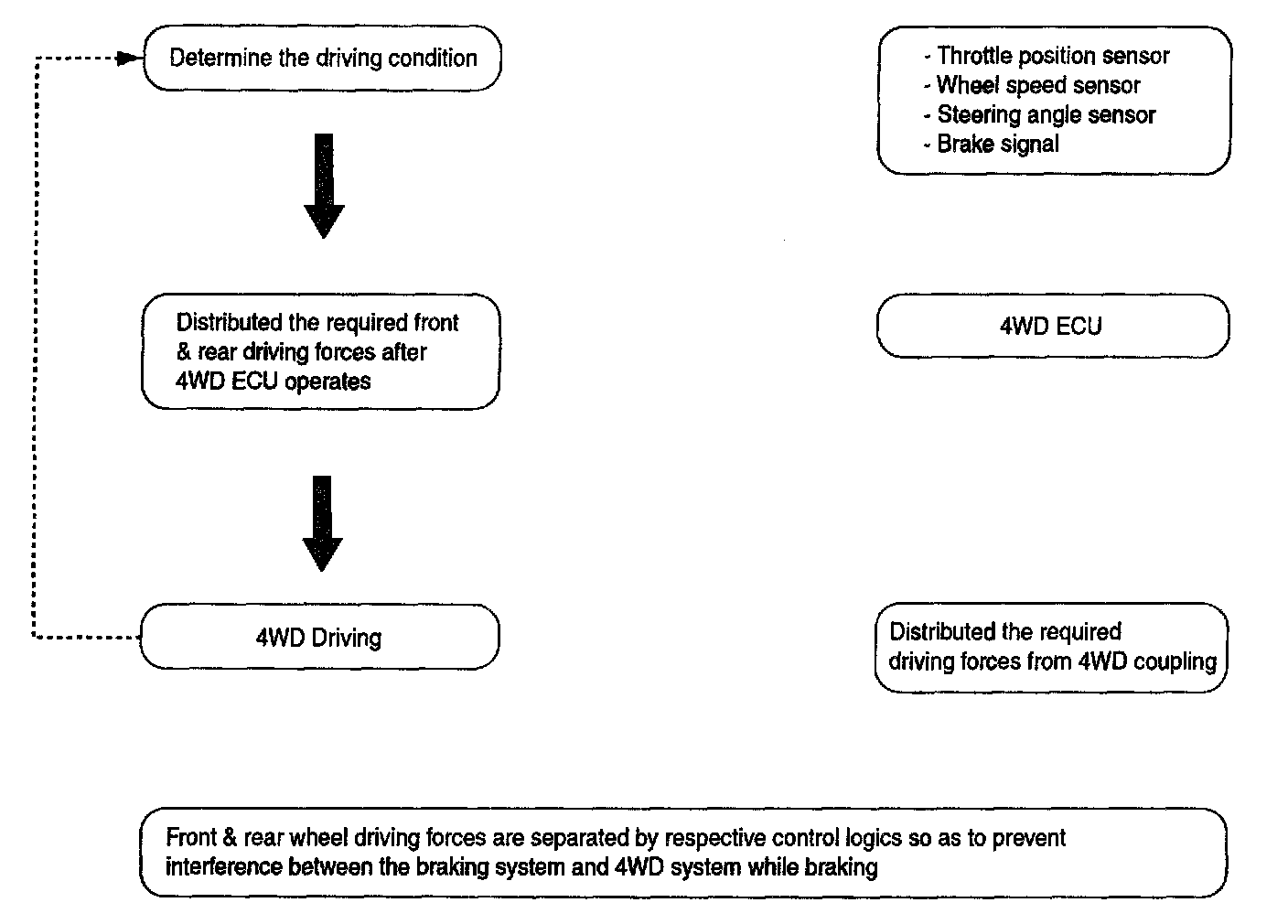 2. Distributed the required driving force after 4WD ECU operates.