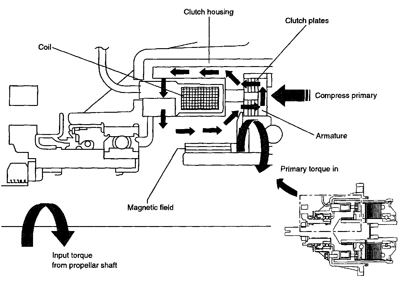 3. Electric Magnetic Clutch (EMC) operates the primary clutch.