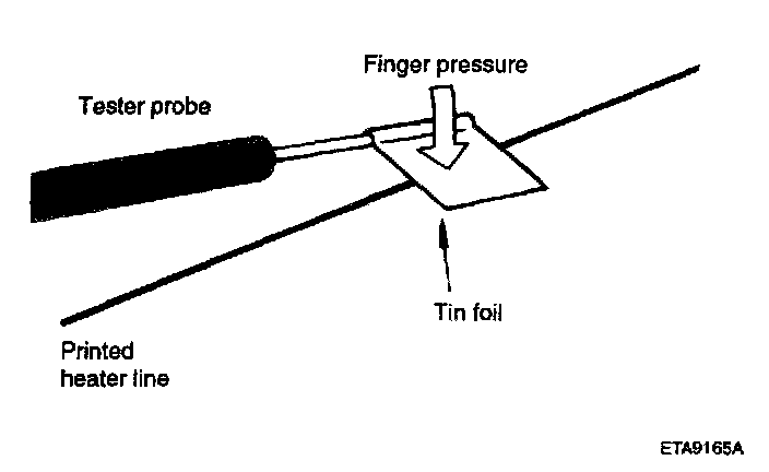 CAUTION: Wrap tin foil around the end of the voltmeter test lead to prevent damaging the heater line. Apply finger pressure on the tin foil, moving the tin foil along the grid line to check for open circuits.