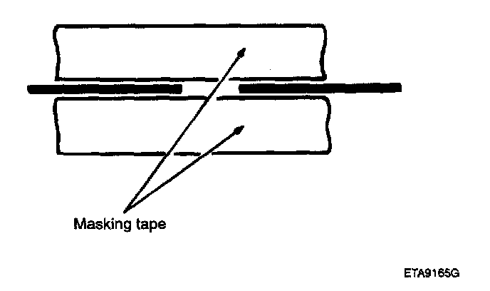 Wipe the glass adjacent to the broken heater line, clean with silicone remover and attach the masking tape as shown. Shake the conductive paint container well, and apply three coats with a brush at intervals of about 15 minutes apart. Remove the tape and allow sufficient time for drying before applying power. For a better finish, scrape away excess deposits with a knife after the paint has completely dried. (Allow 24 hours).