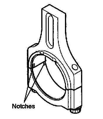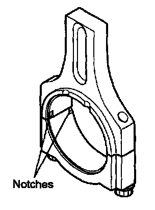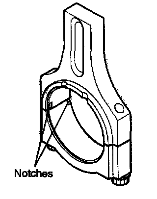 14. When a new connecting rod is installed, make sure that the notches for holding the bearing in place are on the same side.