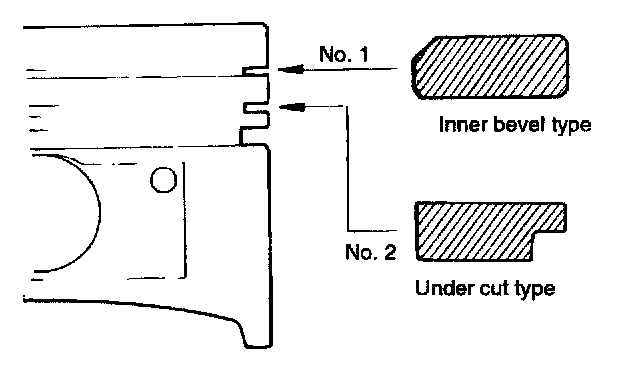 2. Check each piston ring for breakage, damage and abnormal wear. Replace the defective rings. When the piston requires replacement, its rings should also be replaced.