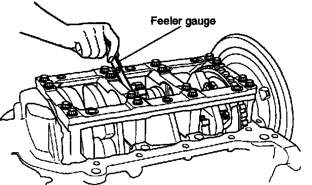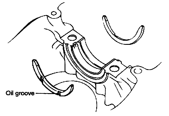 11. Install the thrust washers in the No. 3 main bearing cap with the oil grooves facing outward.