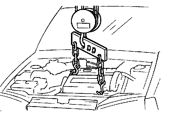 Attach a chain or cable to the engine hooks and lift enough so that there is no pressure on the motor mounts.