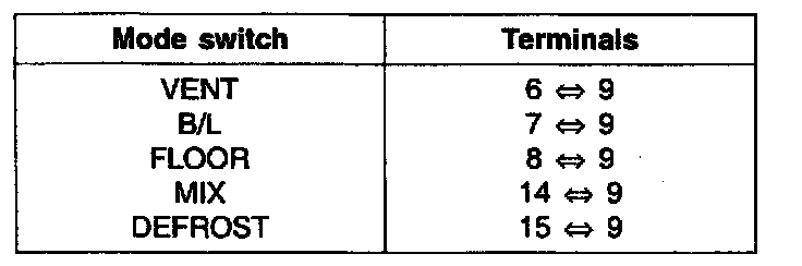 MODE CONTROL SWITCH & LT; ROTARY AND PUSH BUTTON TYPE ONLY & GT;Check for continuity between terminals.