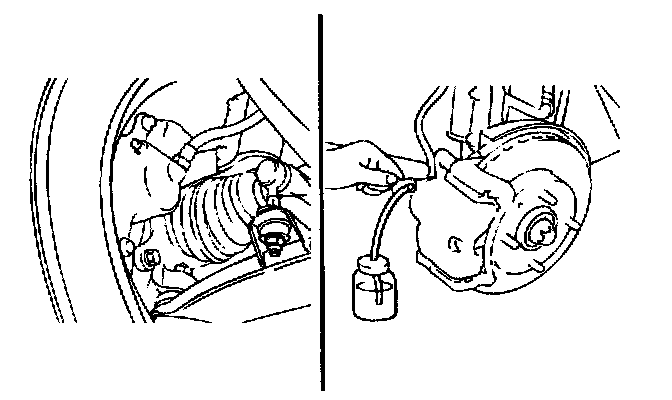 5. Pump the brake pedal several times, and then loosen the bleeder screw until fluid starts to run out without bubbles. Then close the bleeder screw.