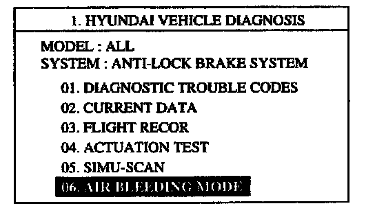 CAUTION: You have to obey maximum operating time (60 seconds) of ABS motor with Scan tool to prevent motor pump burnt.