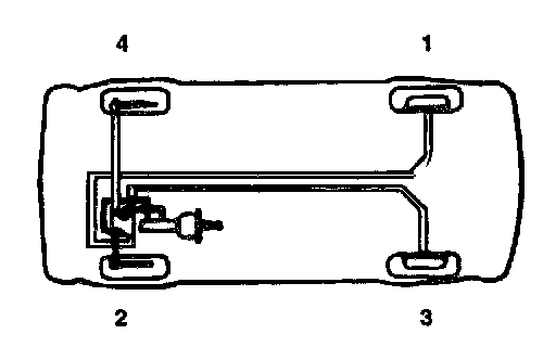 6. Repeat the step 5 until there are no more bubbles in the fluid for each wheel in the sequence shown in the illustration.