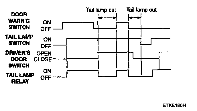 2. With the ignition switched ON, if the driver's door is opened and the ignition is switched OFF, the tail lamp should be automatically OFF.
