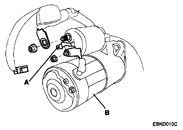 5. Connect the battery cable from battery's negative post to the starter motor body.