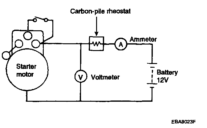 3. Connect a voltmeter (15-volt scale) across starter motor.